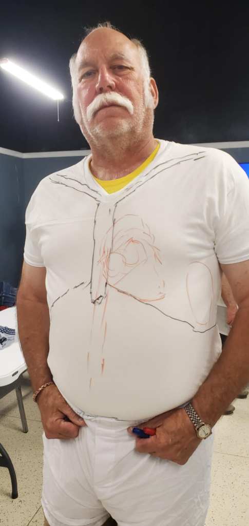 The balance of the day was spent back in the classroom with students working in pairs and with washable fabric markers, to draw relevant body structures on tight white tee shorts and boxers we were instructed to bring. The humor of it aside, as everyone had a fun time doing it, this exercise really brought home the concept of visualization as building the physical model helps create and maintain the cognitive model we must use in the field. This part of the lecture really drove home Doc’s mantra of “surface landmarks are bad.”